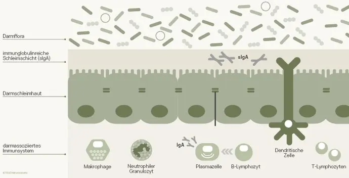 - das darmassoziierte Immunsystem mit rund 80 % aller körpereigenen Immunzellen